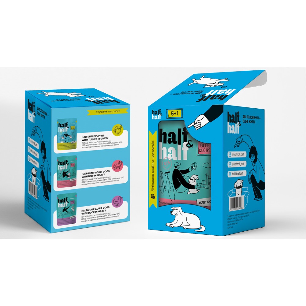 Набір вологих кормів Half&Half 5+1 для дорослих собак, яловичина в соусі