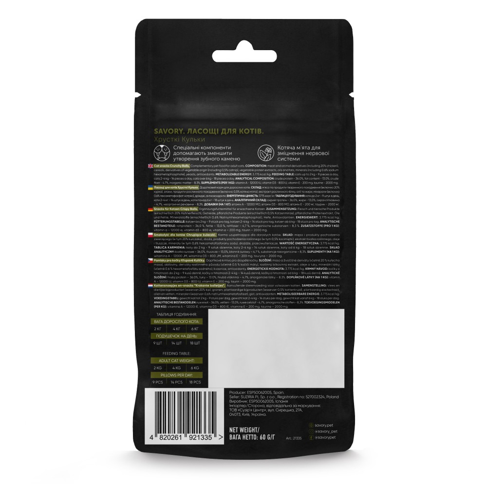 Хрумкі ласощі Savory Cats Snacks Crunchy Balls з котячою м'ятою для котів, 60 г