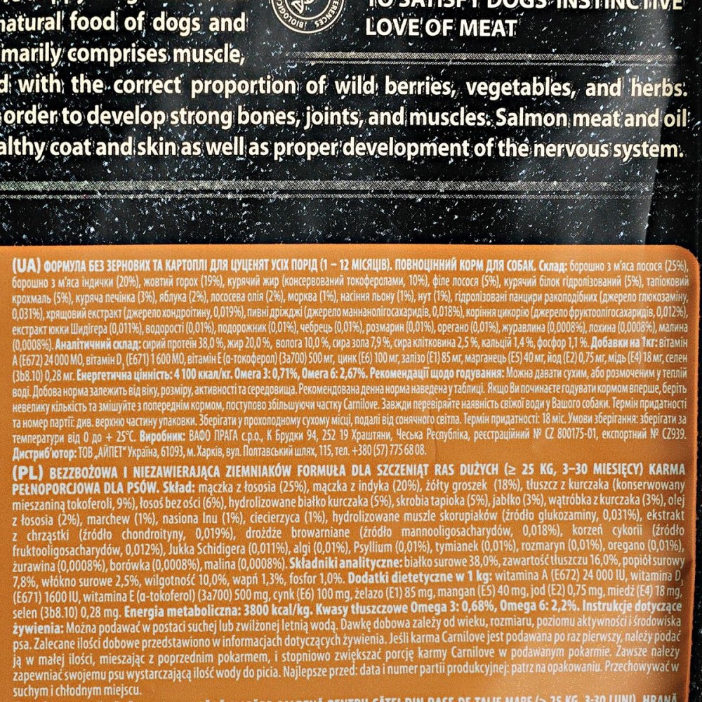 Сухий корм для собак Carnilove Puppy Large Breed Salmon and Turkey — це збалансований холістик для цуценят великих порід, розроблений з урахуванням особливих потреб організму, що росте. В асортименті інтернет-магазину Paddington цей раціон займає особливе місце, адже він забезпечує цуценят необхідними поживними речовинами, білками та жирами для гармонійного розвитку та підтримки здоров'я хрящів.