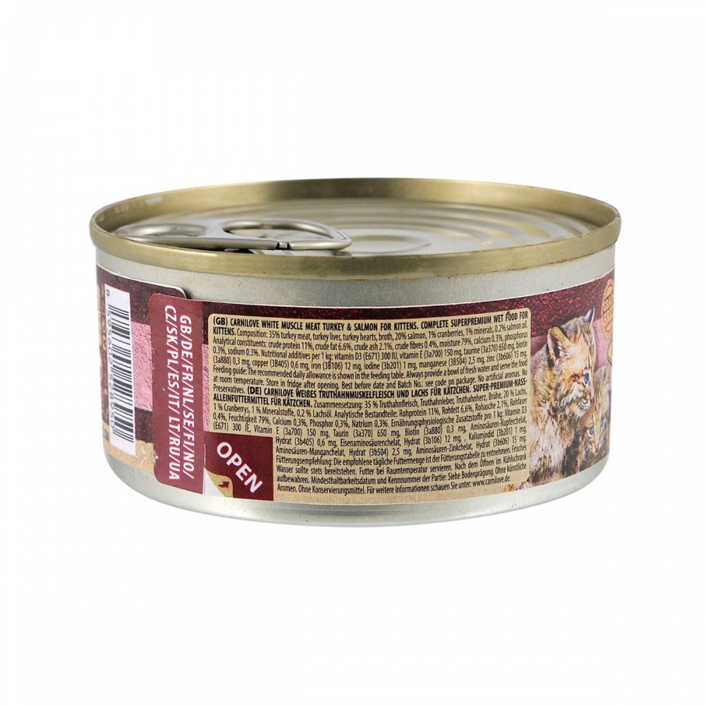 Вологий корм для кошенят Carnilove Kitten з індичкою та лососем — це високоякісний холістик корм для котів, створений для забезпечення здорового росту та розвитку вашого улюбленця. В асортименті інтернет-магазину Paddington ви знайдете лише найкращі товари для тварин, і цей раціон є ідеальним вибором для малюків.