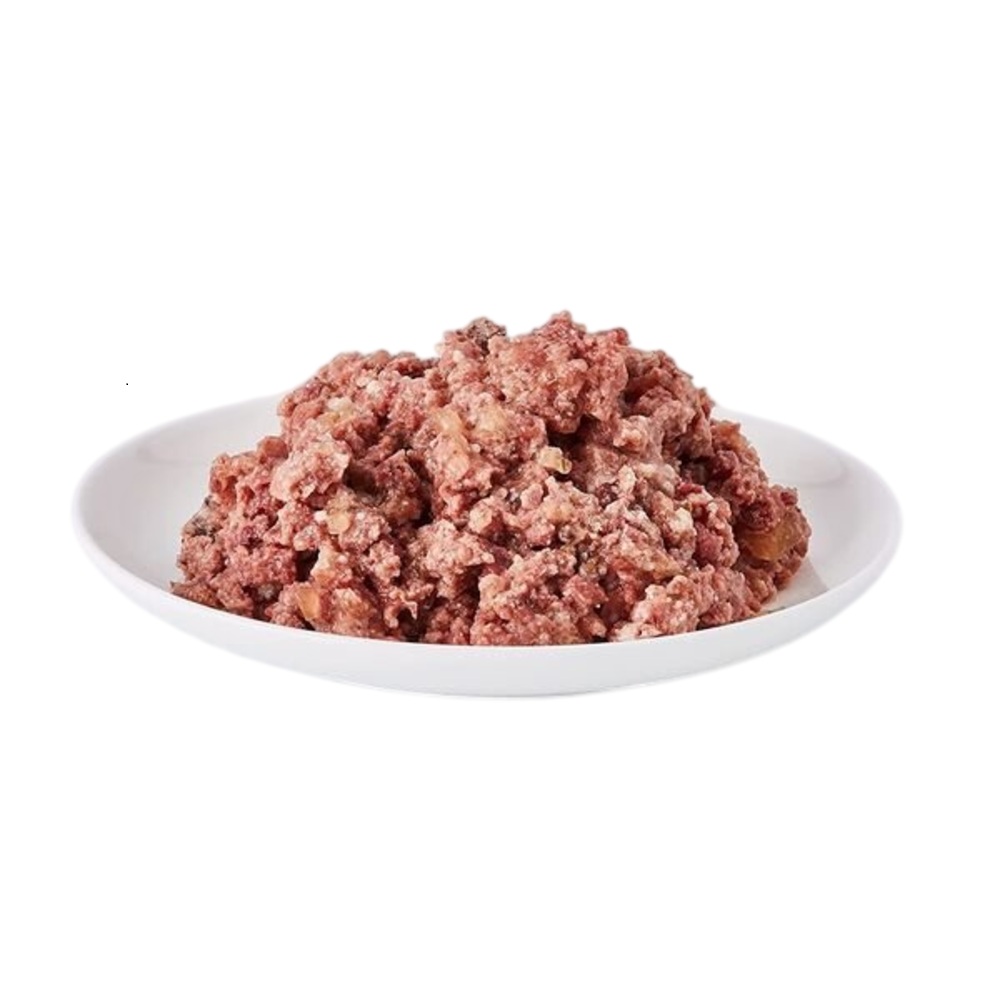 Склад: 35% яловичини (легені, вим'я, м'ясо), 26% курки (печінка, м'ясо, серце), 4% качиних сердець, мінерали, рапсова олія.