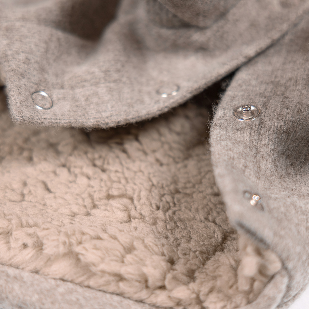 Толстовка виготовлена з якісного трикотажу з начесом та доповнена підкладкою з хутра, що гарантує тепло навіть у прохолодну погоду. Каптур, прикрашений штучним хутром, надійно захищає голову та вушка від вітру. За потреби його можна легко зафіксувати кнопкою на спинці, а наявність отвору для повідця робить прогулянку максимально зручною.