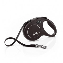 Повідець-рулетка Flexi New Classic для собак, зі стрічкою, розмір M 5 м / 25 кг (чорна)