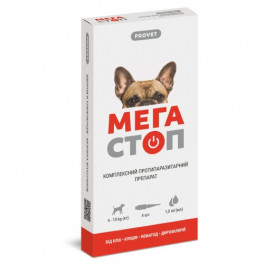 Краплі на холку ProVET «Мега Стоп» для собак від 4 до 10 кг, 4 піпетки (від зовнішніх та внутрішніх паразитів)