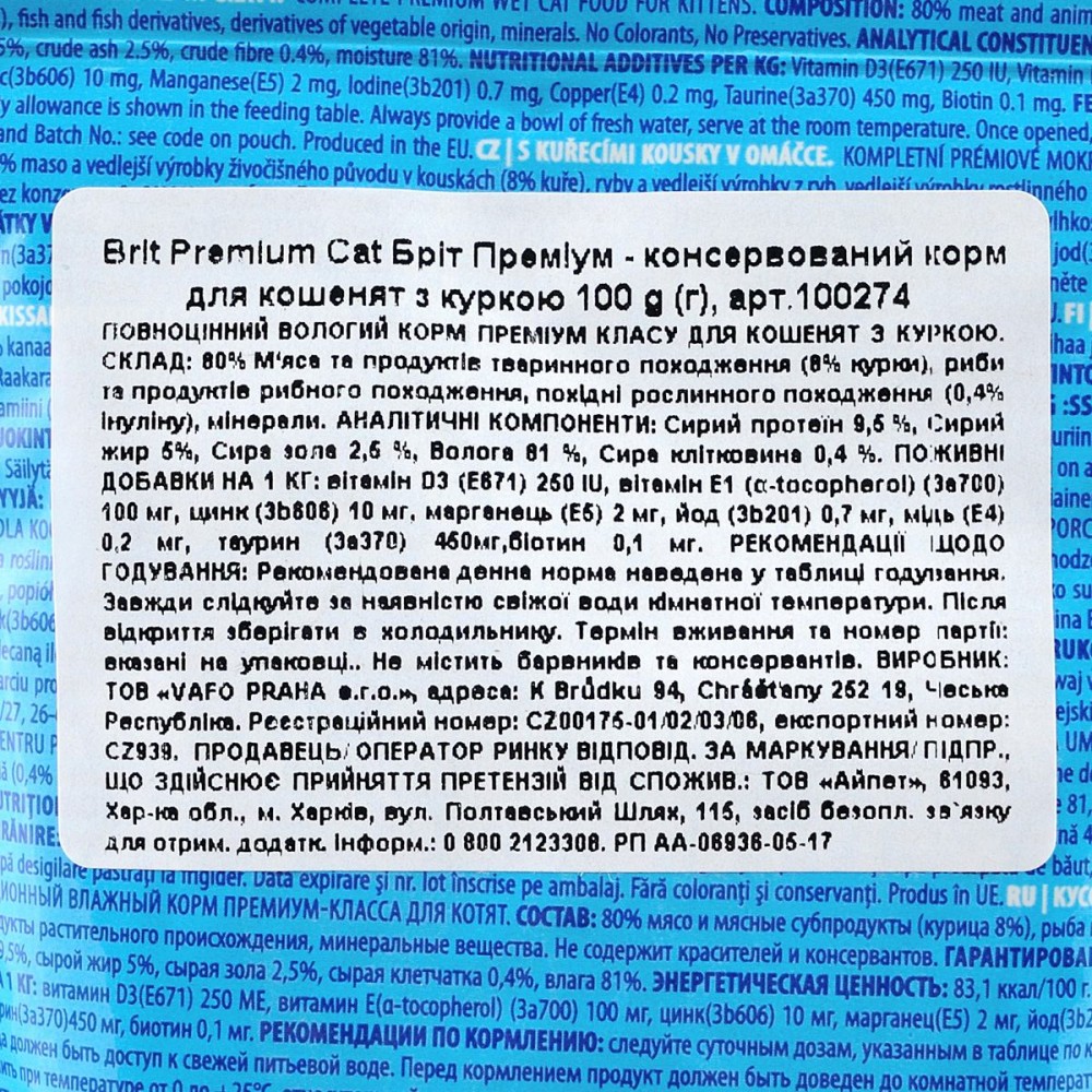 Влажный корм для котят Brit Premium Cat Kitten Chicken Chunks 100 г