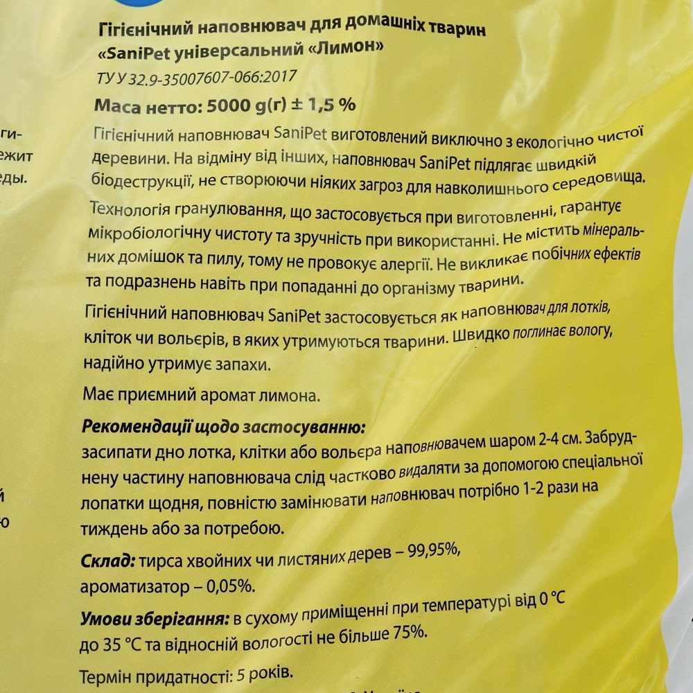 Наполнитель Природа Sani Pet Лимон древесный для котов 5 кг