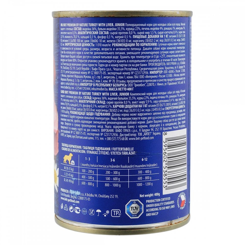 Влажный корм Brit Premium by Nature с индейкой и печенью для собак, 400 г