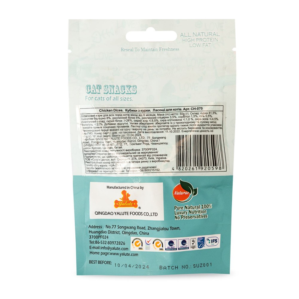 Лакомство Yalute для кошек Chicken Dices кубики с курицей 50 г