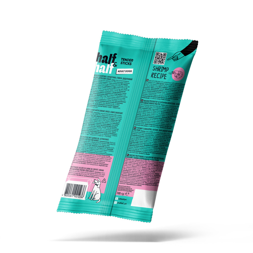Лакомство Half&Half мясные палочки для собак с креветкой — это отличный выбор для владельцев, которые ищут качественные и полезные вкусняшки для собак. В ассортименте интернет-магазина Paddington эти лакомства занимают особое место благодаря своему уникальному составу и привлекательному аромату.