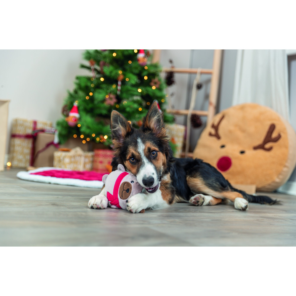 Собаки очень любят мягкие игрушки для питомцев. Почему? Потому что их можно бросать и ловить, играть самому или с хозяином, положить рядом в лежак для уюта или использовать как подушку. Эта плюшевая фигурка подарит вашему любимцу немало радостных минут. Она изготовлена из прочных безопасных материалов и имеет интересный рождественский дизайн, поэтому поможет создать атмосферу праздника в вашем доме. Игрушка со звуком для собак во время игры издает забавные звуки, которые очень нравятся животным.